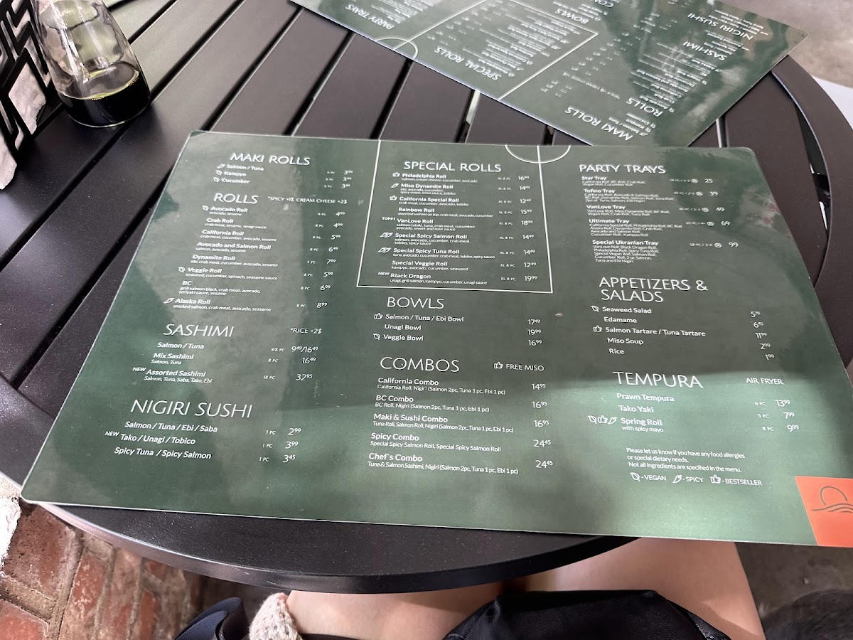 The menu boasts an array of enticing options, including the Special Ukrainian Tray and Tofino Tray, perfect for sharing or a hearty meal. Each dish is crafted with meticulous attention to flavor, incorporating fresh ingredients and creative combinations like the VanLove Roll and Bonito Roll.